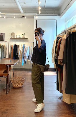 ゆる〜い強撚糸を使ったトップス合わせです。